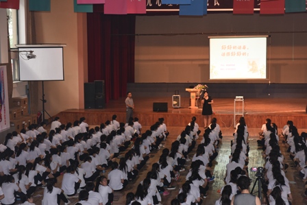 6月24日,学校文体馆坐满了参加活动的学生,会场上不断爆发孩子们开心的笑声和热烈的掌声。讲座中,康老师亲切、生动的话语,心理游戏的现场互动,让同学们经历了一场心灵洗礼。