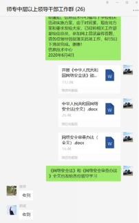 2.在学校中层干部群、信息员群,发布网络安全法普法要求和落实。