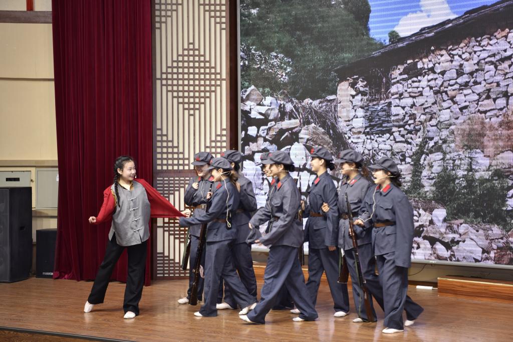 《雪山上的小太阳》是语文教研室潘悦老师根据真实故事改编而成的原创作品。在孙潇潇老师和潘悦老师的指导下,18名学生日夜打磨,辛苦排练,还原了红军二万五千里长征路上翻雪山、过草地的英雄故事,用感人至深的表演打动了现场的评委与观众。