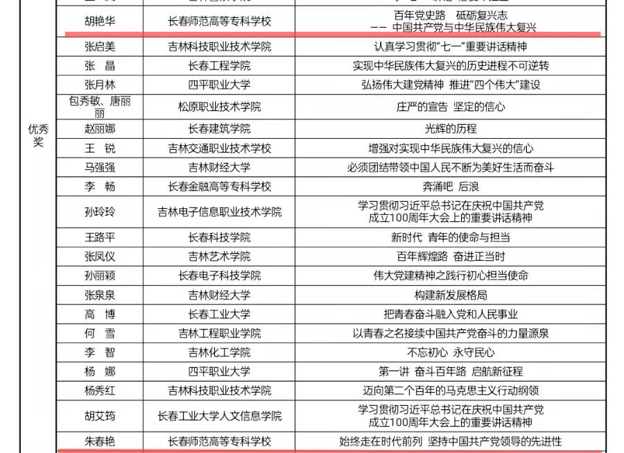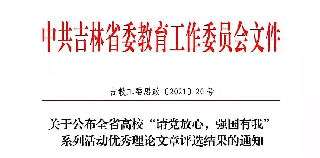 11月16日,中共吉林省委教育工作委员会公布了全省高校“请党放心,强国有我”系列活动评选结果,我校思政部胡艳华老师和朱春艳老师“优秀教案优秀课件”作品均获优秀奖,朱春艳老师的理论文章荣获三等奖。