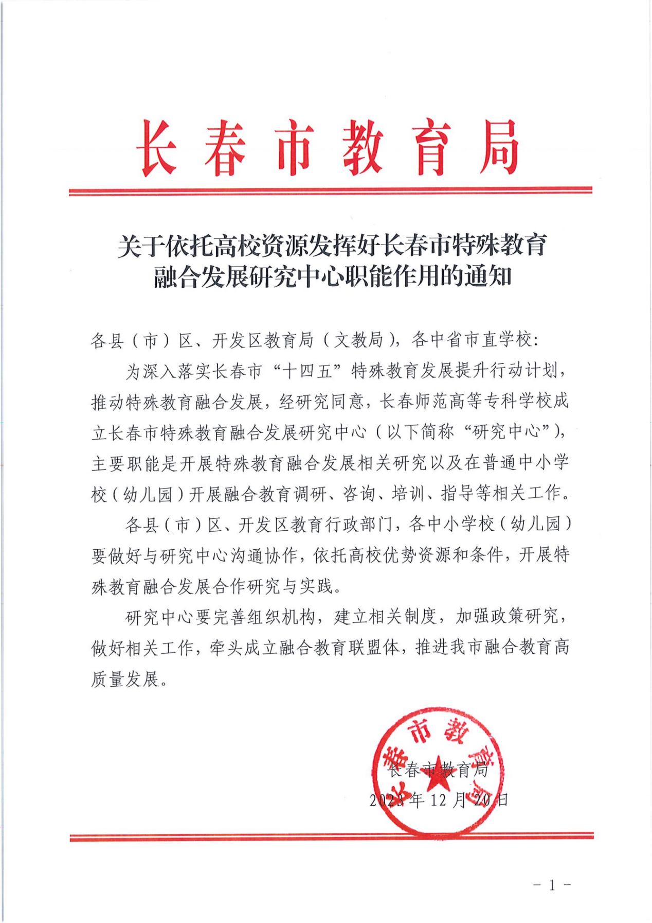 唐名刚宣读了《关于依托高校资源发挥好长春市特殊教育融合发展研究中心职能作用的通知》,“研究中心”办公室设在国产一区二区日本在线,负责日常管理工作。
