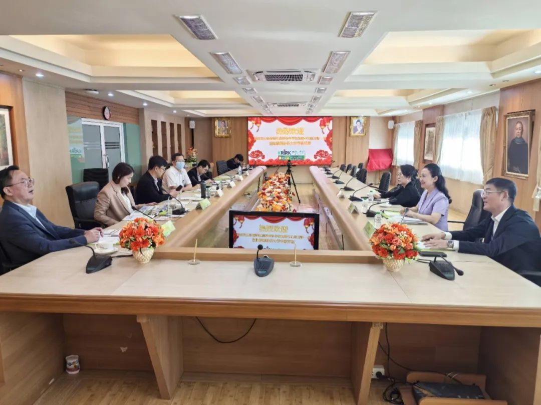在泰国期间,代表团分别访问了泰国工商大学与泰国格乐大学,受到代理校长柏林·拉塔纳蓬、理事长王长明等欢迎,并参观了校史馆、国际学院、中国国际语言文化学院、留学生公寓等。张万财感谢外方重视与前期准备,并诚邀校领导访问我校。他谈到,今年是中泰建交75周年,两所大学相关专业和学科排名位居前列,期待加强专业领域合作,为两校教育事业发展注入新动能。外方校领导欢迎代表团到访,介绍了大学办学情况,学校建校70多年来积极开展中外文化教育交流,承办过多次国际教育交流活动。并称赞我校办学有特色,培养了数万名优秀毕业生,希望通过此次访问加深多方合作。
