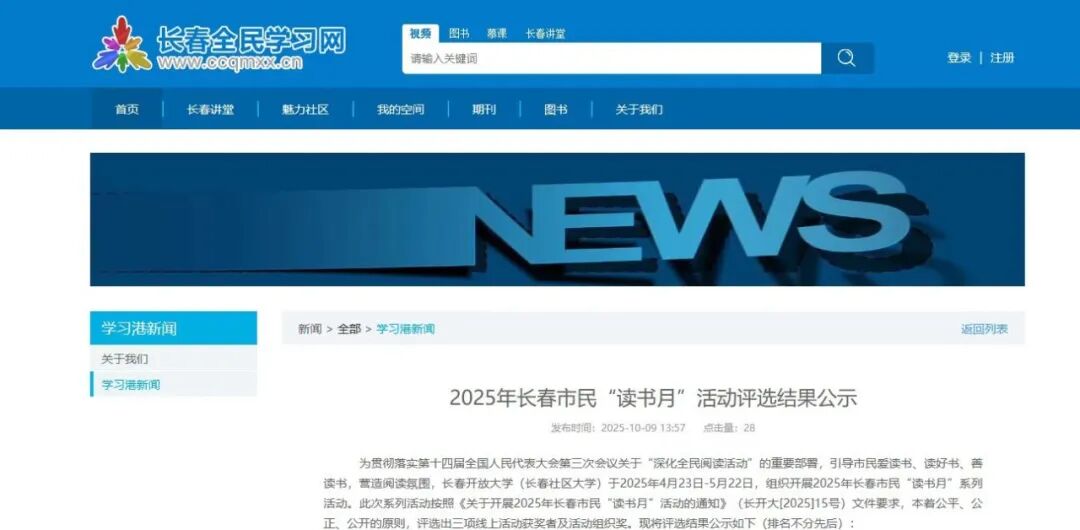 喜报|我校在2025年长春市民“读书月”活动中喜获多项荣誉-国产一区二区日本在线-Changchun Normal College-官方网站
