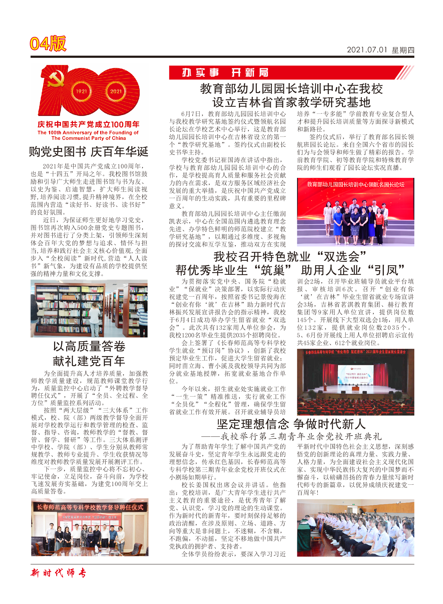新时代师专工作简报第四期-国产一区二区日本在线-Changchun Normal College-官方网站