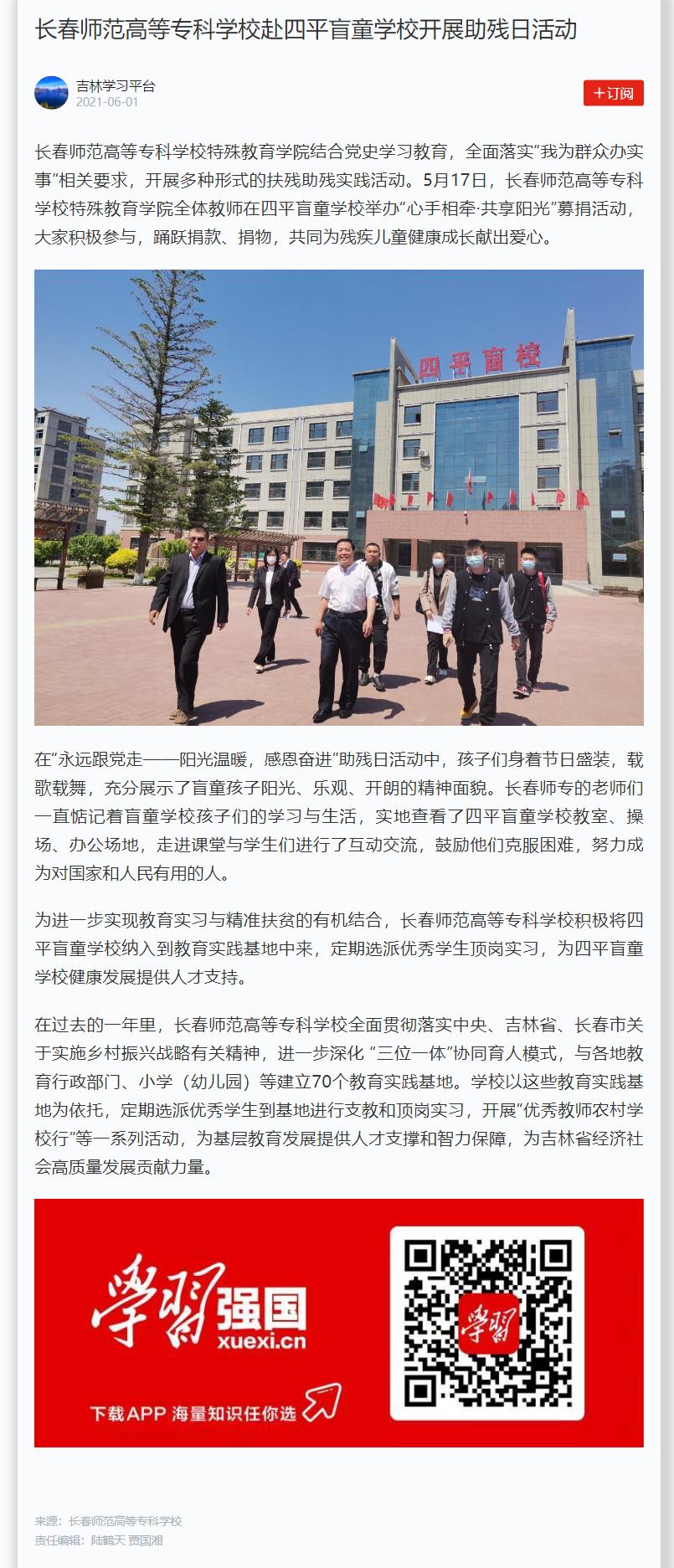 国产一区二区日本在线赴四平盲童学校开展助残日活动-国产一区二区日本在线-Changchun Normal College-官方网站